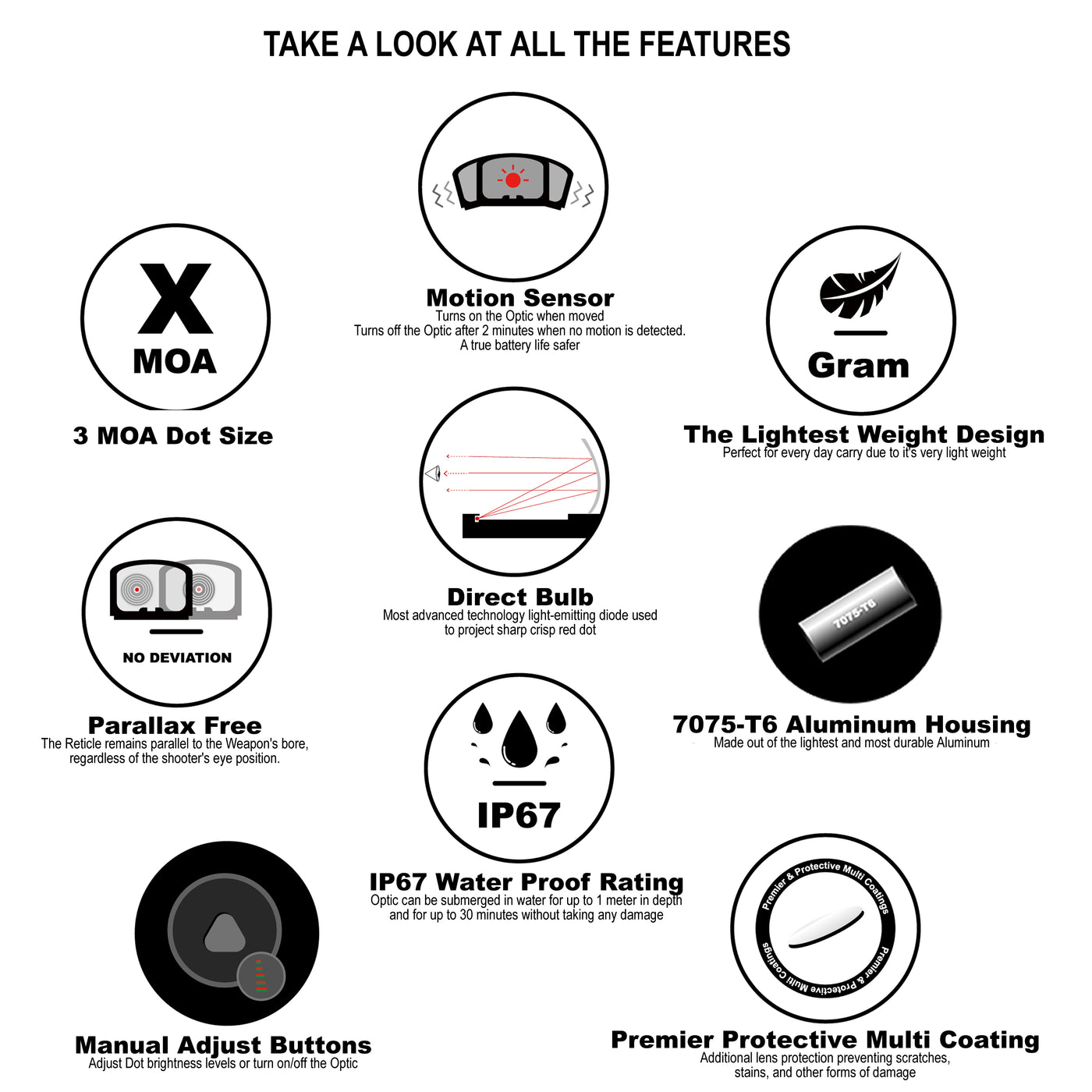 - 3 MOA DOT SIZE WITH 8 INTENSITY & 2 NV LEVELS